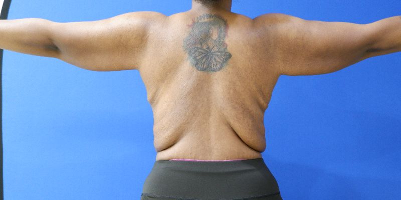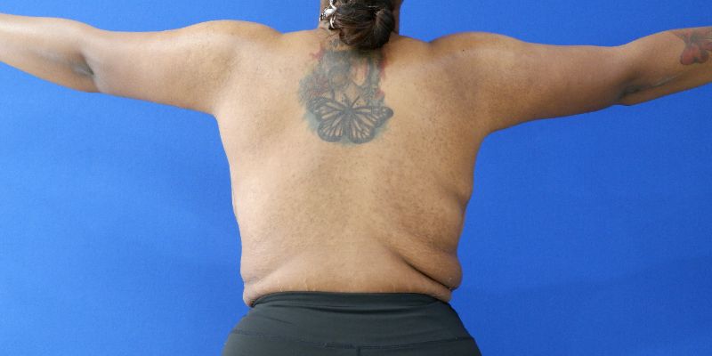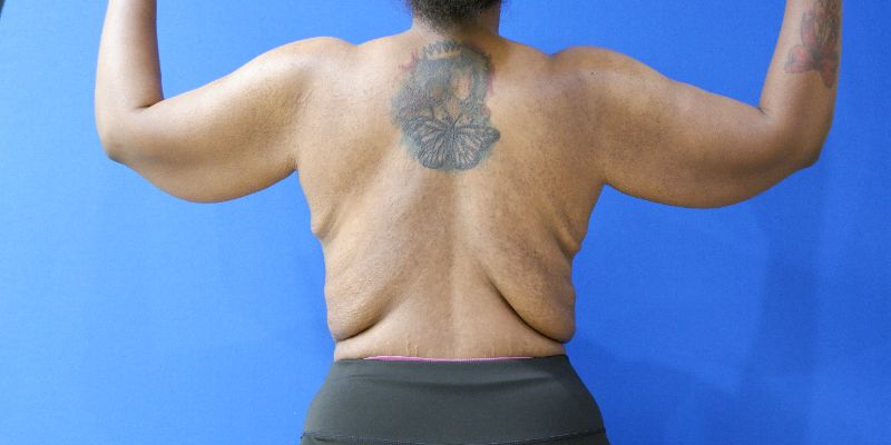 This patient in her late 20’s has lost a significant amount of weight with lifestyle changes including intermittent fasting and adopting a KETO diet. She presented unhappy with the excess skin on her arms. Dr. Robyn Daugherty performed an extended brachioplasty. Learn more about Arm Lift by clicking here. If you are ready to take the next step, schedule your consultation with Dr. Daugherty today.