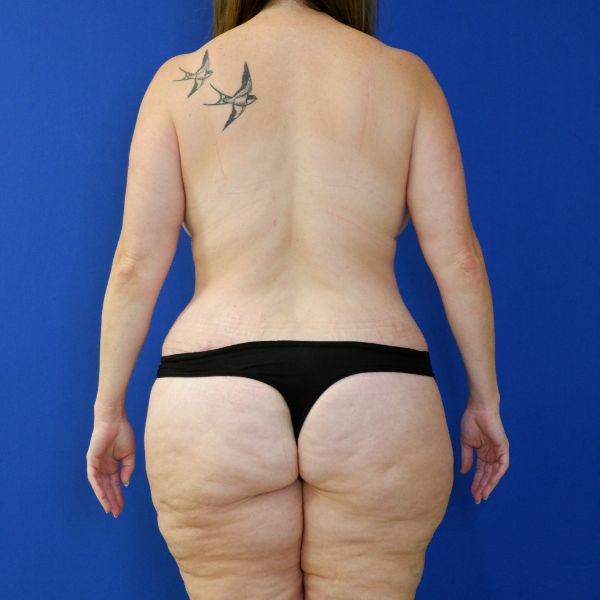 This patient in her 40s is a mother of two children and has lost a significant amount of weight with lifestyle changes. She presented unhappy with her breasts and trunk. Dr. Robyn Daugherty performed a bilateral breast lift or mastopexy with augmentation using 365cc silicone gel implants and axillary liposuction. She also performed abdominoplasty with truncal or 360-degree liposuction and a circumferential lower body lift. Notice the difference in the patient’s buttocks after the lower body lift. Learn more about Mommy Makeover by clicking here. If you are ready to take the next step, schedule your consultation with Dr. Daugherty today.